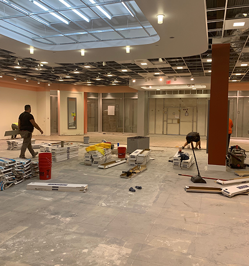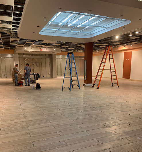 Witness a space in transition, captured mid-renovation, where the potential of a modern commercial interior begins to take shape.
